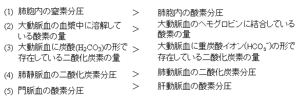 【問】体内における空気の成分の比較である。正しいのはどれか。 1つ選べ。[画像へ]