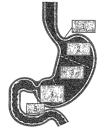 胃の構造を図に示した。各部位の名称の組合せである。正しいのはどれか。1つ選べ。